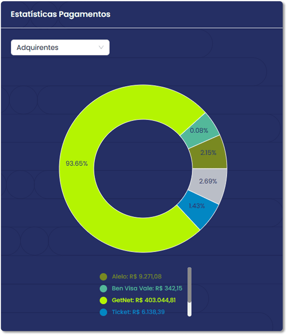 Filtros inteligentes por bandeira, adquirente e banco, para entender melhor suas vendas e tomar decisões mais assertivas